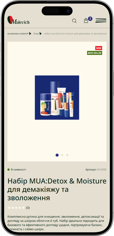 Страница карточки товара является ключевым элементом пользовательского пути, где посетитель получает детальную информацию о продукте и может принять решение о покупке. Она содержит высококачественные изображения, подробное описание, состав и преимущества товара, а также блоки с ценой, доступностью и возможностью выбора количества. Front-end реализация обеспечивает интерактивность страницы: пользователь может просматривать изображения в галерее, изменять параметры продукта, добавлять товар в корзину или в список желаний, а анимационные эффекты делают взаимодействие плавным и приятным. CMS позволяет легко обновлять информацию о продукте и управлять контентом без дополнительных усилий. Страница карточки товара сочетает эстетику бренда, удобство использования и техническую надежность, создавая эффективный инструмент для стимулирования продаж и повышения удовлетворенности клиента.