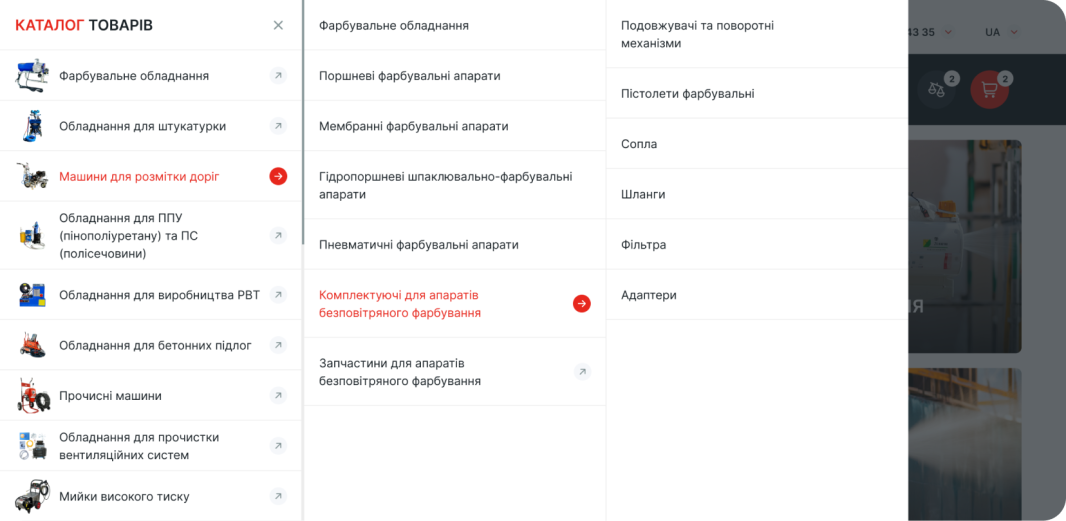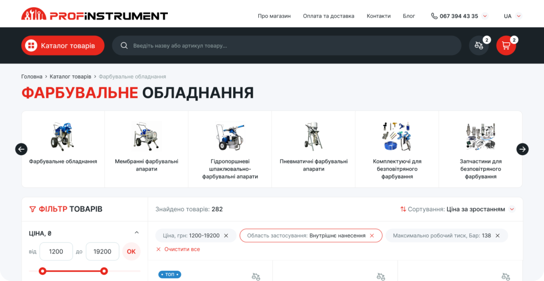 Функциональная система фильтрации позволяет пользователям быстро отсортировать товары по ключевым параметрам и атрибутам, таким как технические характеристики, тип оборудования или другие важные критерии выбора. Это особенно важно для B2C- и B2B-аудитории, которая принимает решения на основе конкретных параметров, а не только визуальной составляющей.