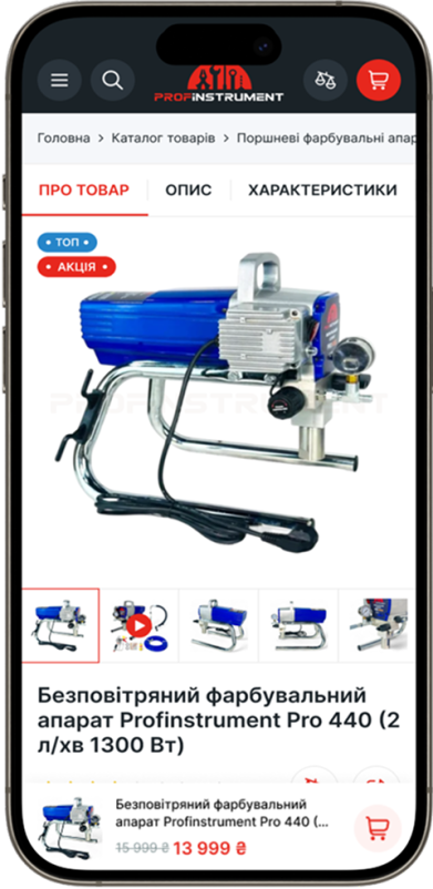 Проект Profinstrument был реализован как полноценное e-commerce решение для продажи профессионального инструмента и оборудования с полным циклом работ — от разработки дизайна до запуска сайта и настройки Google рекламы. Основной фокус был сделан на создании удобного, понятного и функционального интернет-магазина, готового к масштабированию и активному привлечению клиентов.