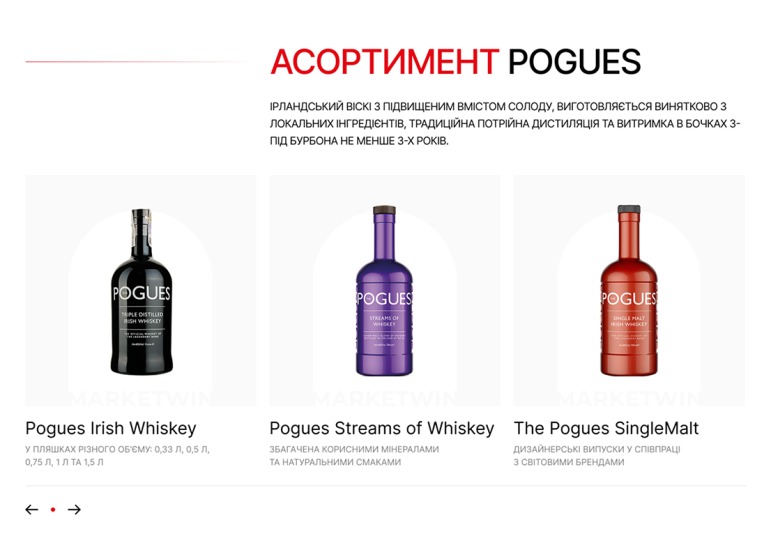 Блок асортименту реалізований як оглядовий каталог продукції бренду без прямої комерції. Основним завданням було показати ширину та різноманіття лінійки, зберігаючи просту та логічну структуру. Кожна позиція подана як частина цілісного бренду, що дозволяє швидко оцінити продуктову пропозицію, її стиль та напрямок. Такий формат зручний для B2B-аудиторії, дистриб’юторів і партнерів, які шукають загальне розуміння асортименту, а не процес купівлі.