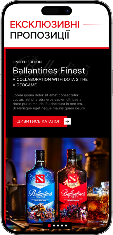 Перший екран сторінки бренду виконує роль повноцінної бренд-вітрини. Тут зосереджена ключова ідея бренду, його характер та позиціонування. Ми зробили акцент на візуальній складовій і впізнаваності, щоб з першого контакту сформувати відчуття преміальності та довіри. Контент першого екрану працює як точка входу для партнерів і клієнтів: він швидко пояснює, з яким брендом вони мають справу, та мотивує до подальшого ознайомлення з асортиментом і можливостями співпраці.